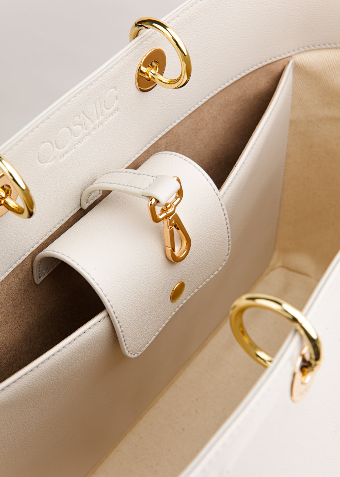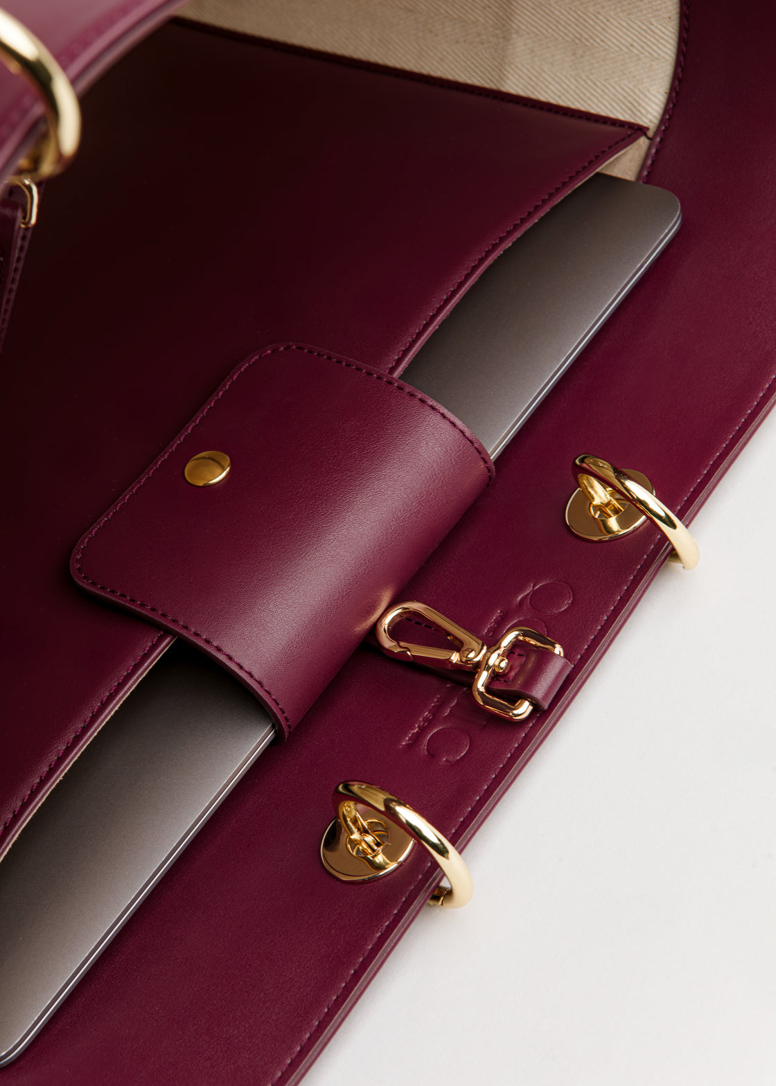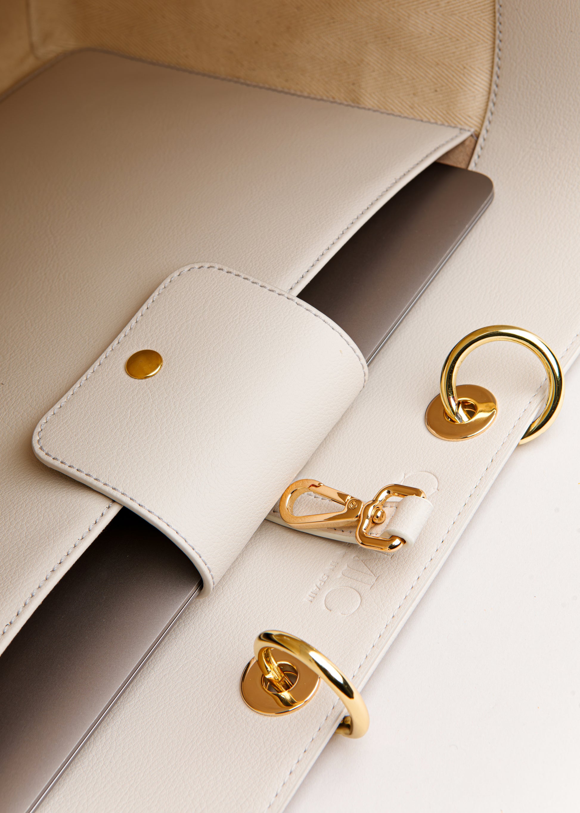 Diseñado con un compartimento interior para portátil de hasta 13", asas cortas para un look más sofisticado y asas largas para un porte más dinámico. Su paso de maleta —convertible en bolsillo exterior con cierre magnético— te permite moverte con libertad entre aeropuertos, estaciones y oficinas sin renunciar a la elegancia.